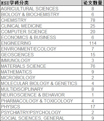 二、2025年9月学院对本校12个ESI学科(化学、材料科学、工程学、计算机科学,农业科学,生态环境学,物理学,临床医学、地球科学、生物学与生物化学、毒理学与药理学和社会科学总论)和1个潜力ESI学科(数学)新发文数量统计如下: