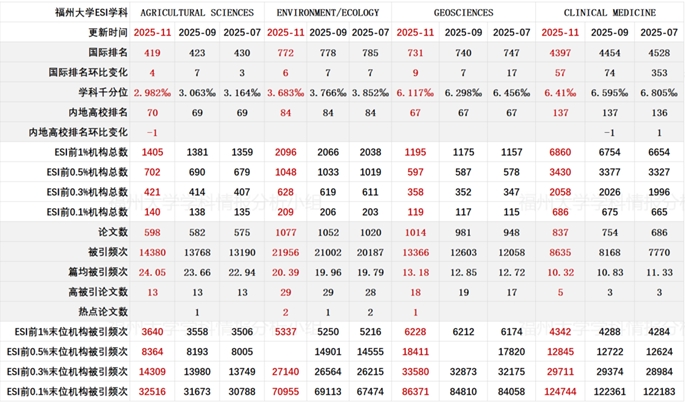 2025年11月13日,科睿唯安更新了ESI数据(2025年第6次更新,含10年8个月的收录论文及其引文信息)。此次数据涵盖的时间范围为2015年1月1日-2025年08月31日。